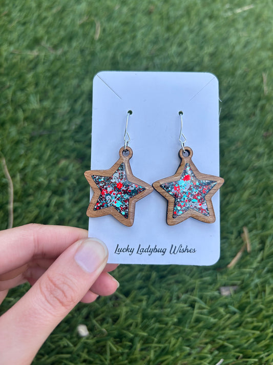 2-Tier Stars wooden earrings