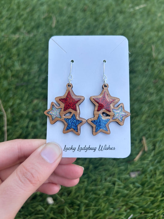 3-Tier Stars wooden earrings