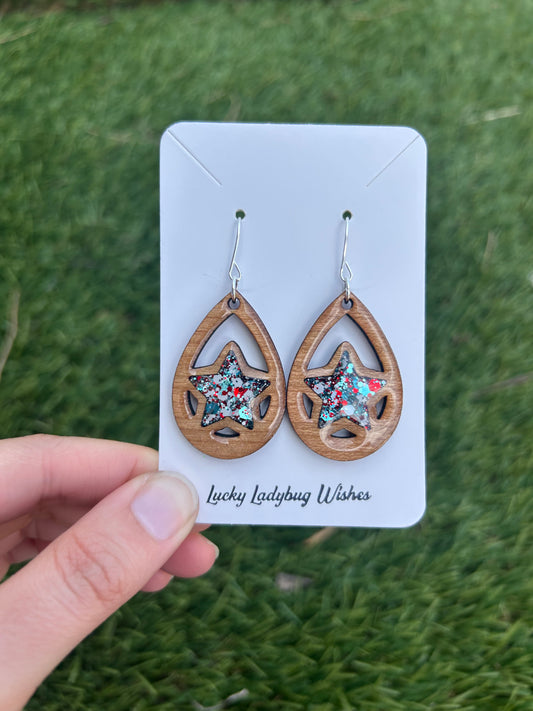 Teardrop Stars wooden earrings