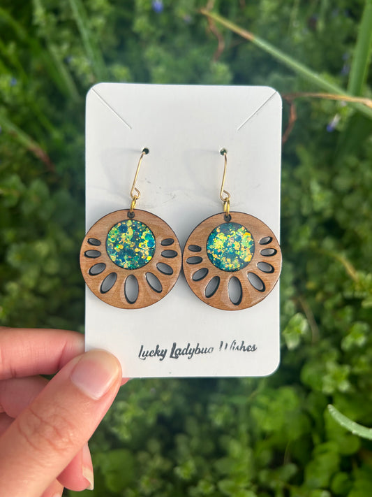 Sunflower wooden earrings